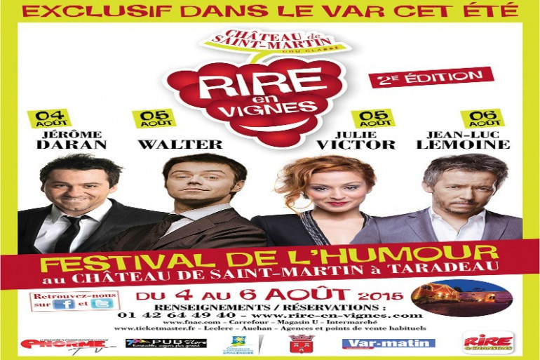 Pour cette 2eme édition, le festival du Château Saint-Martin à Taradeau dans le Var reçoit Jérôme Daran, Walter, Julie Victor et Jean-Luc Lemoine du 04 au 06 août prochain !!!