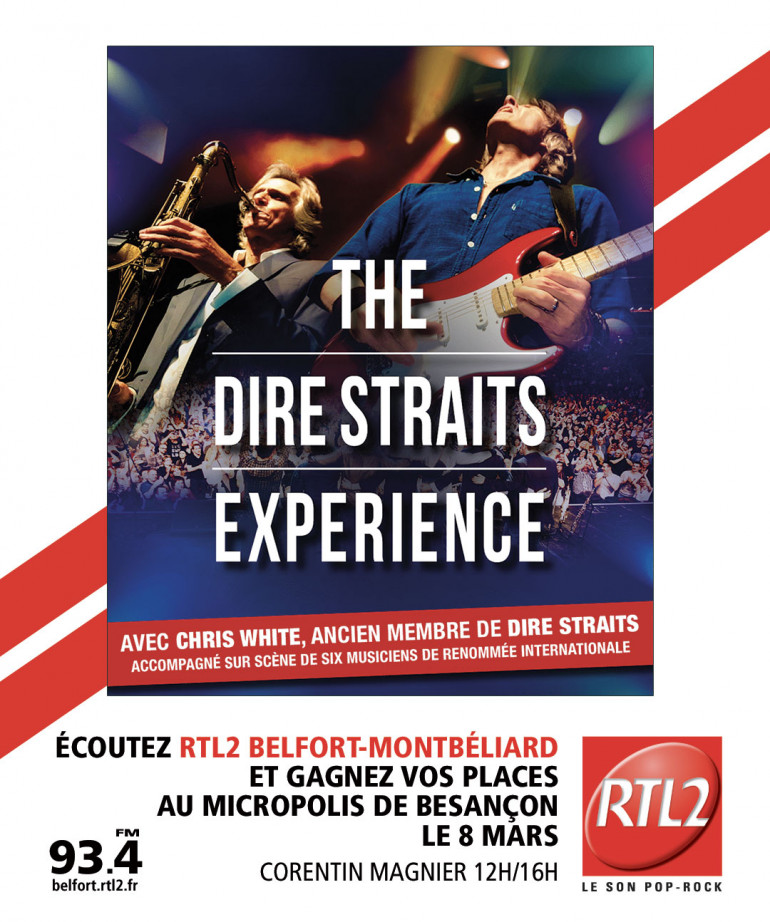 Cette semaine, écoutez RTL2 Belfort Montbéliard entre midi et 16h, dès que vous entendez le signal RTL2, appelez le 03 63 19 30 01 et repartez avec vos places pour The Dire Straits Experience