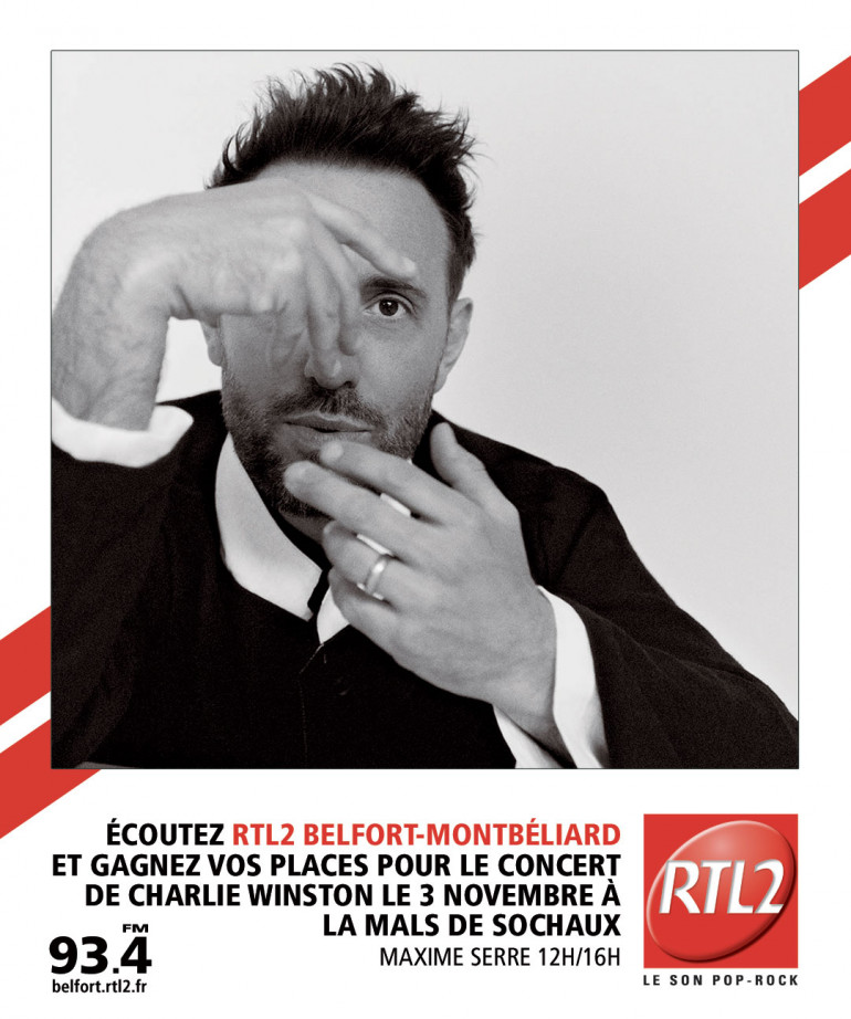 Cette semaine, écoutez RTL2 Belfort Montbéliard entre midi et 16h, dès que vous repérez le signal RTL2, appelez le 03 63 19 30 01 et gagnez vos places pour le concert de Charlie Winston, le 3 novembre à la Mals de Sochaux