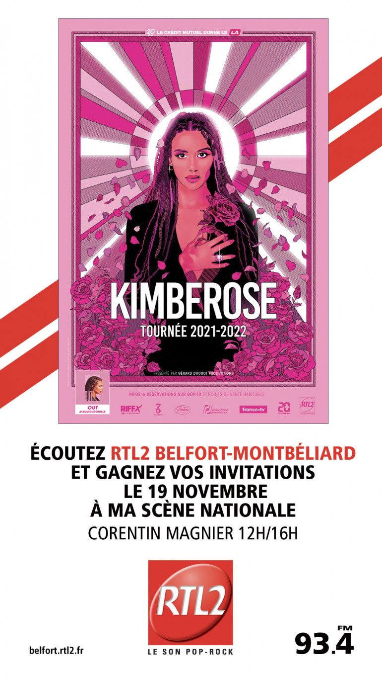 Cette semaine, écoutez RTL2 Belfort Montbéliard entre midi et 16h, dès que vous entendez le signal RTL2, appelez le 03 63 19 30 01 pour venir applaudir Kimberose à MA Scène Nationale à Montbéliard le 19 Novembre