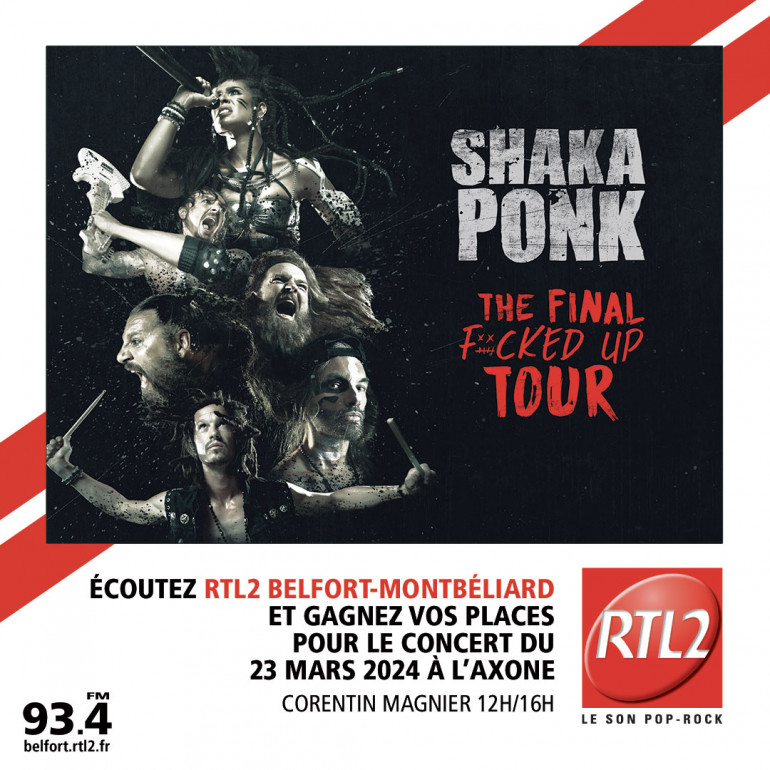 Pour gagner vos invitations, écoutez RTL2 Belfort Montbéliard entre midi et 16h, dès que vous repérez le signal RTL2, appelez le 03 63 19 30 01 et venez applaudir Shaka Ponk le 23 Mars 2024 à l'Axone de Montbéliard