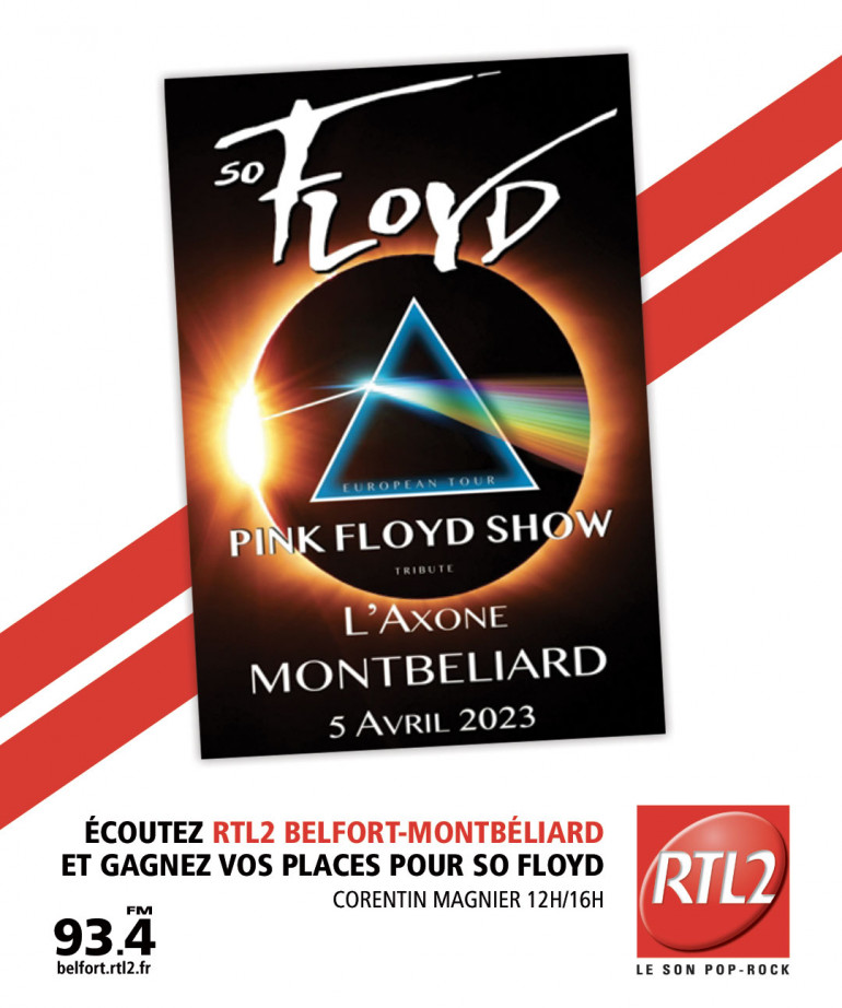 Cette semaine, écoutez RTL2 Belfort Montbéliard entre midi et 16h, dès que vous entendez le signal RTL2, appelez le 03 63 19 30 01 et repartez avec vos places pour So Floyd à l'Axone le 5 Avril