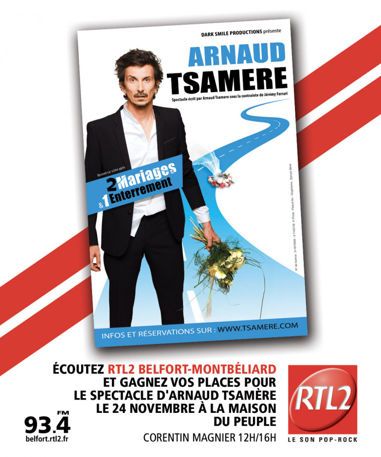 Pour gagner vos places, écoutez RTL2 Belfort Montbéliard entre midi et 16h, dès que vous repérez le signal RTL2, appelez le 03 63 19 30 01 et partez applaudir Arnaud Tsamère à la Maison du Peuple à Belfort le 24 Novembre
