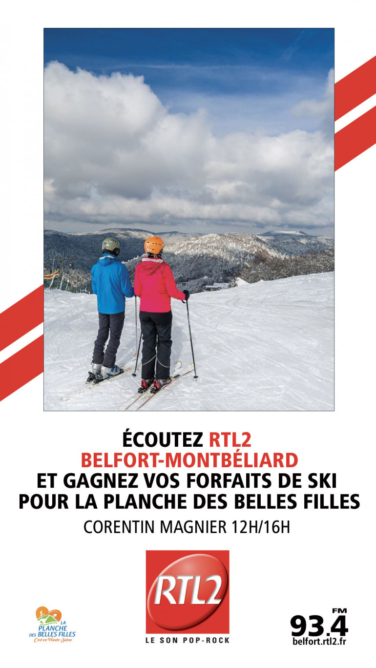 Cette semaine, écoutez RTL2 Belfort Montbéliard entre midi et 16h, dès que vous repérez le signal RTL2, appelez le 03 63 19 30 01 et gagnez votre forfait de ski à la Planche de Belles Filles