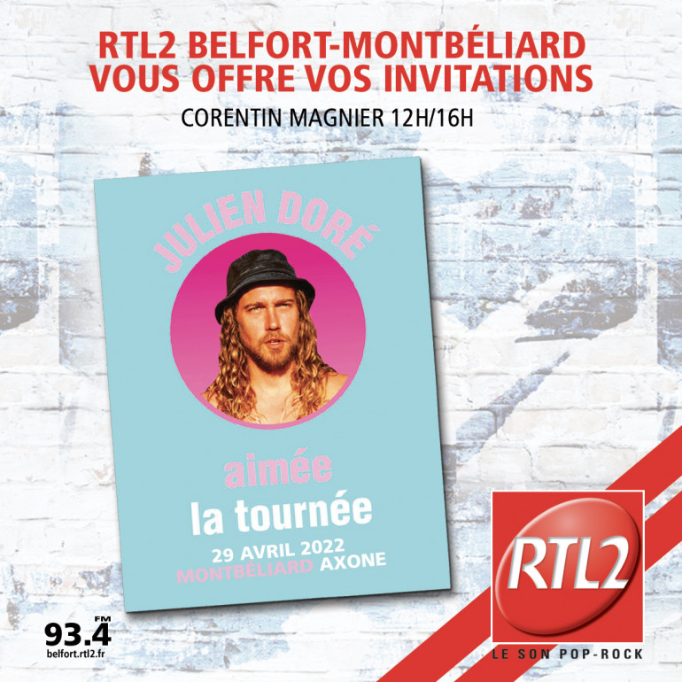Pour gagner vos places, écoutez RTL2 Belfort Montbéliard entre midi et 16h, dès que vous entendez le signal RTL2, appelez le 03 63 19 30 01 et partez applaudir Julien Doré à l'Axone.