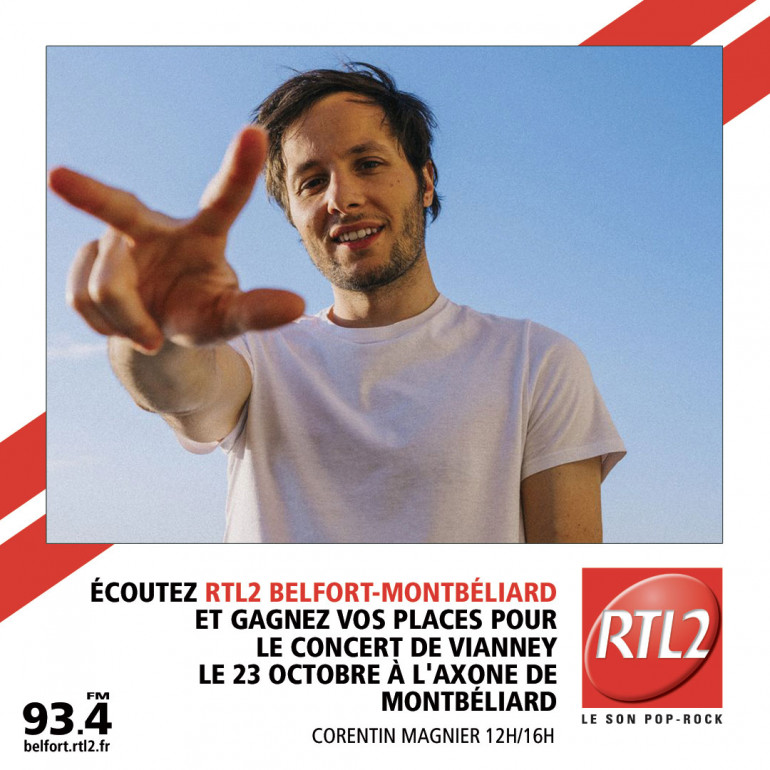 Cette semaine, écoutez RTL2 Belfort Montbéliard entre midi et 16h, dès que vous entendez le signal RTL2, appelez le 03 63 19 30 01 pour venir applaudir Vianney à l'Axone de Montbéliard le 23 Octobre.