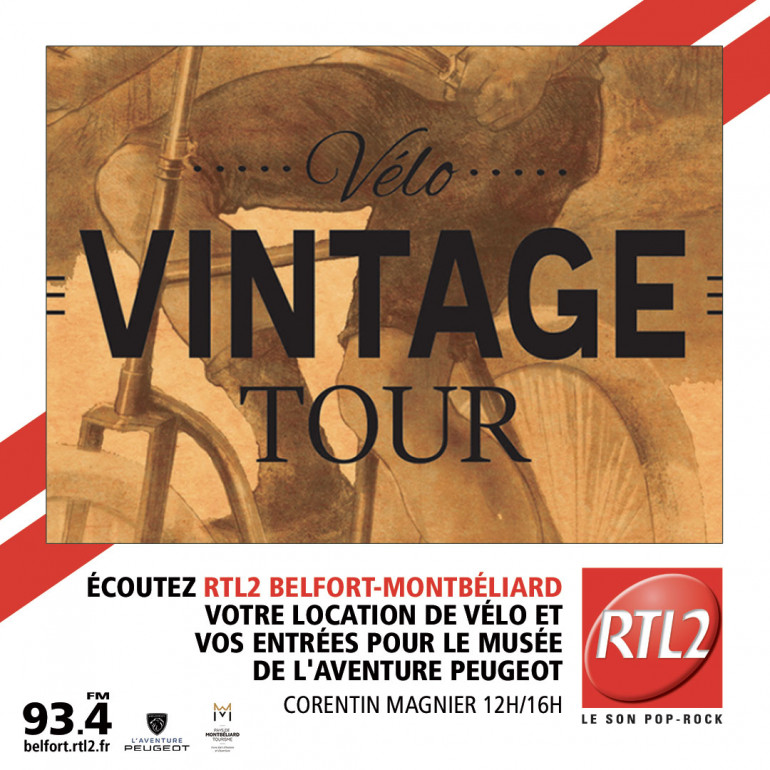 Cette semaine, écoutez RTL2 Belfort Montbéliard entre midi et 16h, dès que vous repérez le signal RTL2, appelez le 03 63 19 30 01 et partez découvrir le Pays de Montbéliard avec un vélo vintage et gagnez vos entrées pour le musée de l'Aventure Peugeot