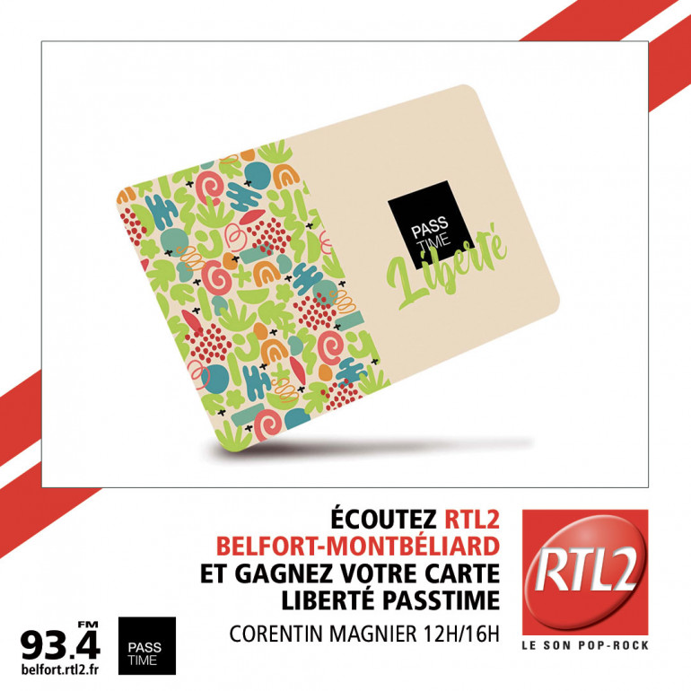 Cette semaine, écoutez RTL2 Belfort Montbéliard, entre midi et 16h, dès que vous repérez le signal RTL2, appelez le 03 63 19 30 01 et vous repartez avec votre carte Liberté Pass Time