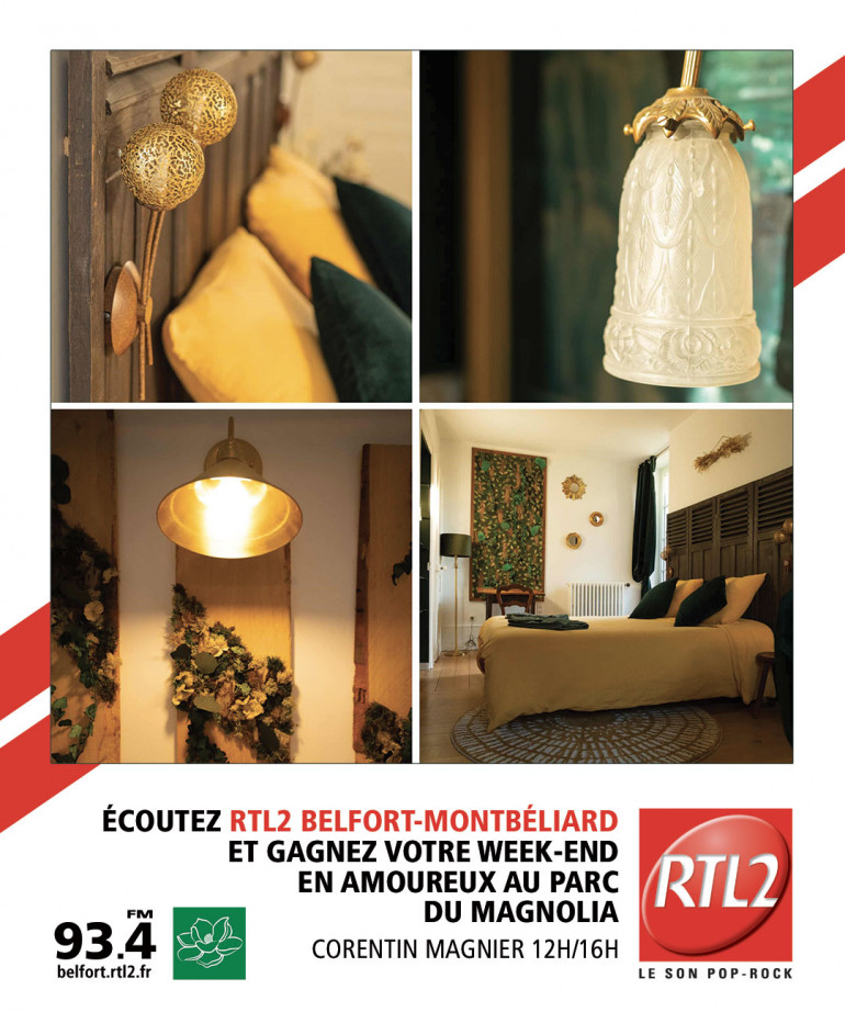 Pour gagner votre séjour dans le Parc du Magnolia, écoutez RTL2 Belfort Montbéliard entre midi et 16h, dès que vous repérez le signal RTL2, appelez le 03 63 19 30 01 et gagnez votre nuit pour 2 avec petit-déjeuner + 1 dîner et 1 accès à l’Espace détente pendant 2h30 incluant une formule