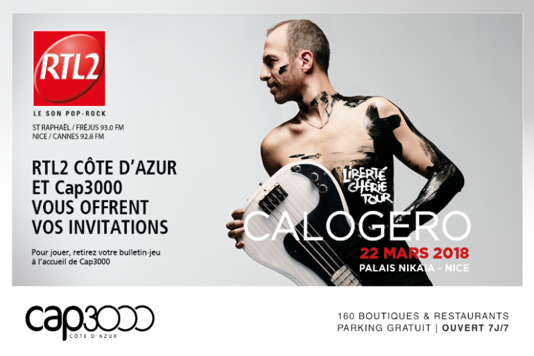 RTL2 Côte d’Azur et le Centre Commercial Cap 3000, à Saint Laurent Du Var, vous invitent au concert de Calogero au Palais Nikaia à Nice.