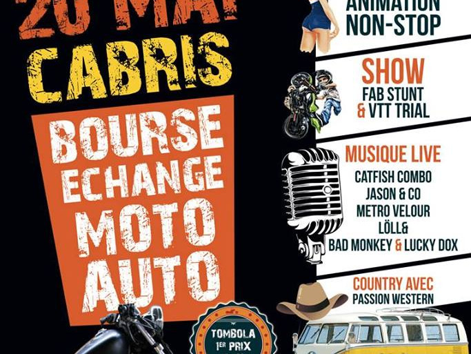 Le grand pré de cabris accueillera pour l’occasion une bourse/expo moto et auto toutes années, tout type voitures de collection, d’exceptions, de rallye, mais aussi des véhicules militaires, un marché avec de nombreux stands de pièces détachées, vêtements motos, accessoires country, vintage pour tous les goûts...