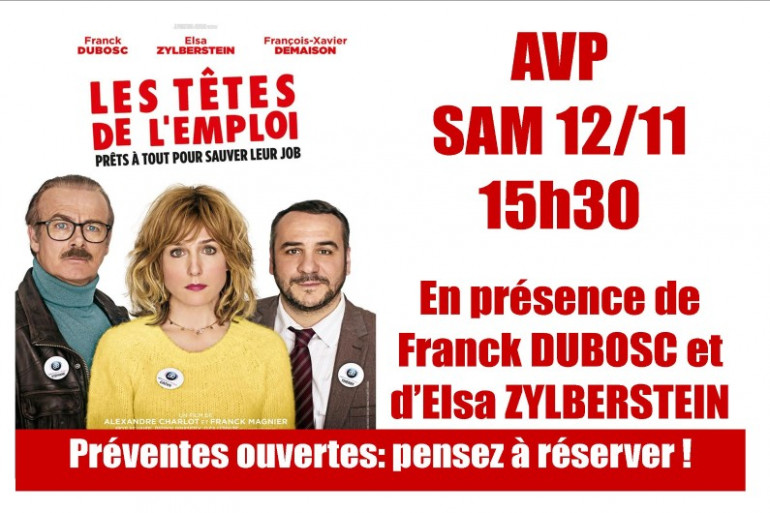 Les Cinémas Lido à Saint Raphaël présentent : "Les têtes de l'emploi" en avant-première, Samedi 12 Novembre à 15h30