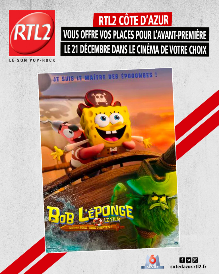 Bob l’éponge revient au cinéma avec Un pour tous, tous pirates ! A cette occasion, RTL2 Côte d'Azur vous invite à l'avant-première le 21 décembre dans le cinéma de votre choix !!!