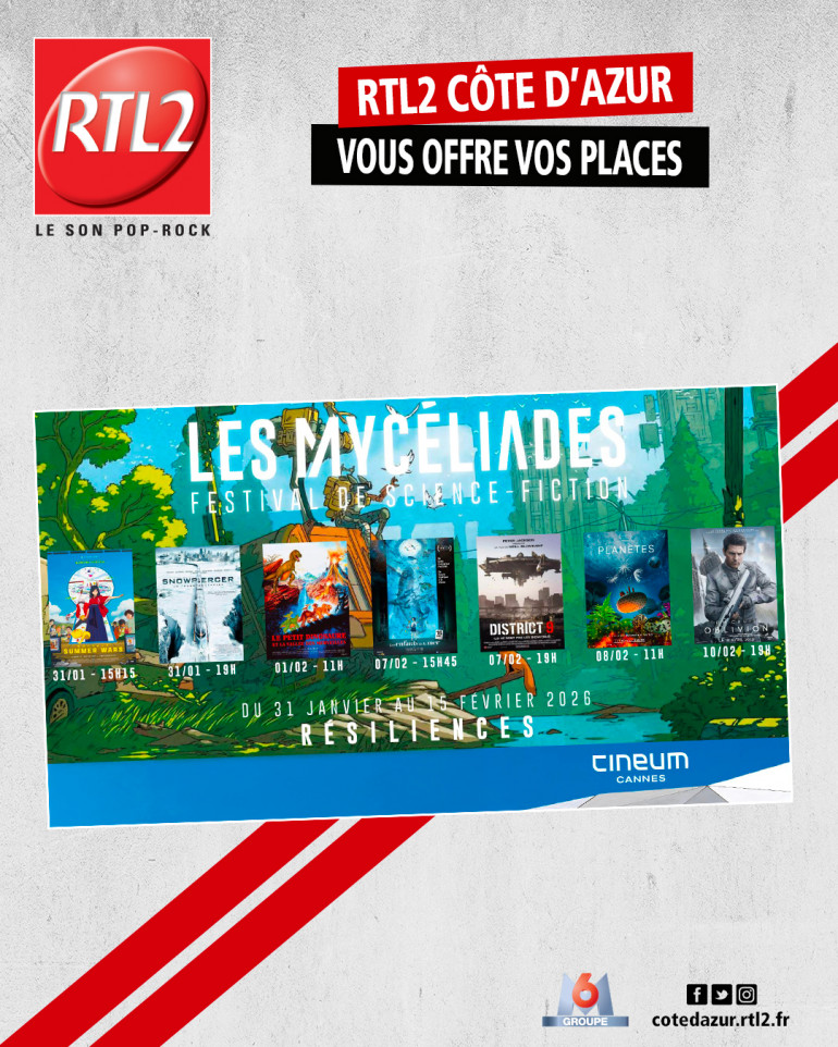 Envoyer "Mycéliades", dites-nous quels films vous voulez aller voir et toutes vos coordonnées, prénom, nom, téléphone, adresse postale, mail à cotedazur@rtl2.fr