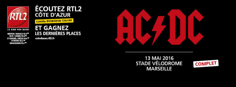 Cette semaine, RTL2 Côte d'Azur vous offre vos places pour le concert événement d'AC/DC, le 13 mai au Stade Vélodrome !