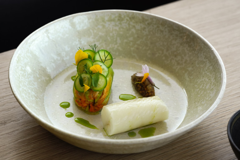 Accompagné de sa brigade, il œuvre au quotidien pour vous emmener en voyage au grès de ses intuitions entre terre & mer.
