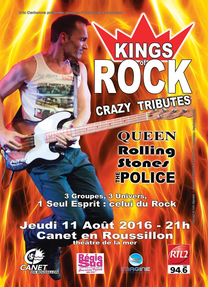 RTL2 Languedoc Roussillon présente le Kings of Rock Crazy Tributes le Jeudi 11 Aout à Canet en Roussillon! 3 concerts ,3 groupes , 3 univers et un seul esprit …celui du rock ! Écoutez les plus grands morceaux de Queen, des Rolling Stones et du groupe Police avec RTL2 et le Kings of Rock Crazy Tributes le Jeudi 11 Aout à 21h au théâtre de la mer à Canet en Roussillon . Kings of Rock avec RTL2 Languedoc Roussillon..le son pop rock .