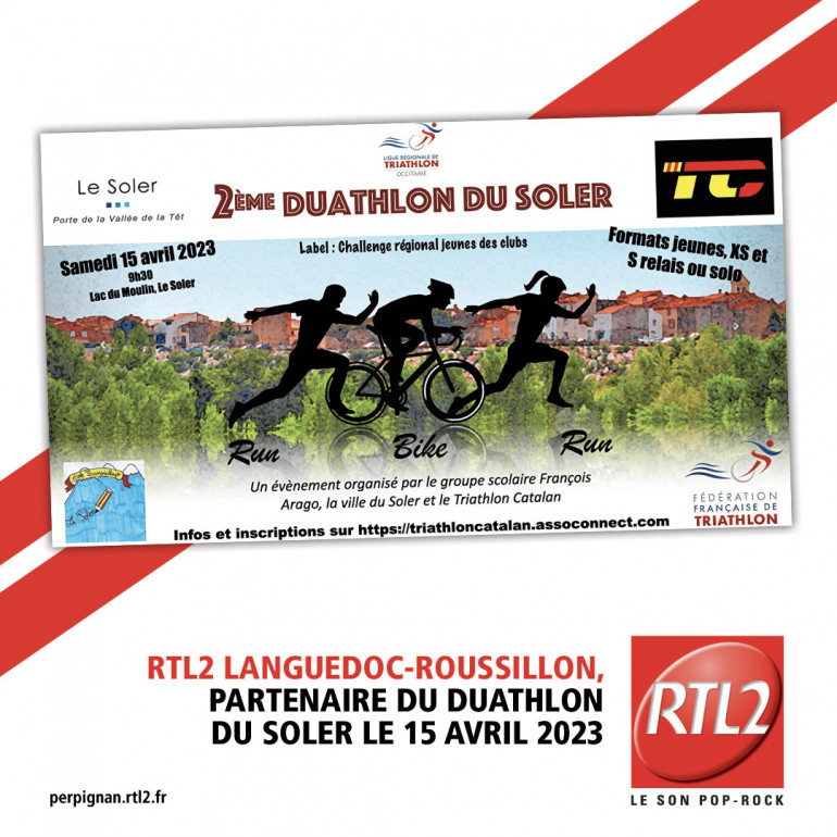 Et jusqu'au 31 Mars, on vous offre vos dossards. Pour ça, envoyez "DUATHLON DU SOLER" par mail à perpignan@rtl2.fr