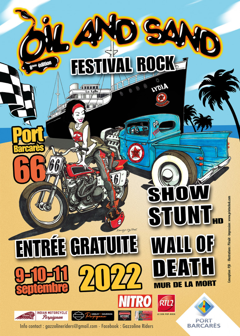 Expositions auto et moto US, Show Stunt, Show Bike, Show Car et des concerts POP ROCK pour 3 jours exceptionnels ! Entrée gratuite et restauration sur place. Le rassemblement OIL AND SAND du 9 au 11 Septembre avec RTL2 Languedoc Roussillon, le SON POP ROCK !