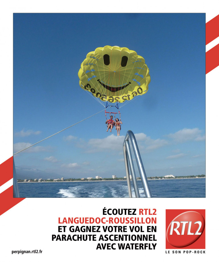 Cette semaine, écoutez RTL2 Languedoc-Roussillon entre midi et 16h, dès que vous entendez le signal RTL2, appelez le 04 30 32 36 01 et gagnez votre vol en parachute ascensionnel avec Waterfly Argelès-sur-Mer