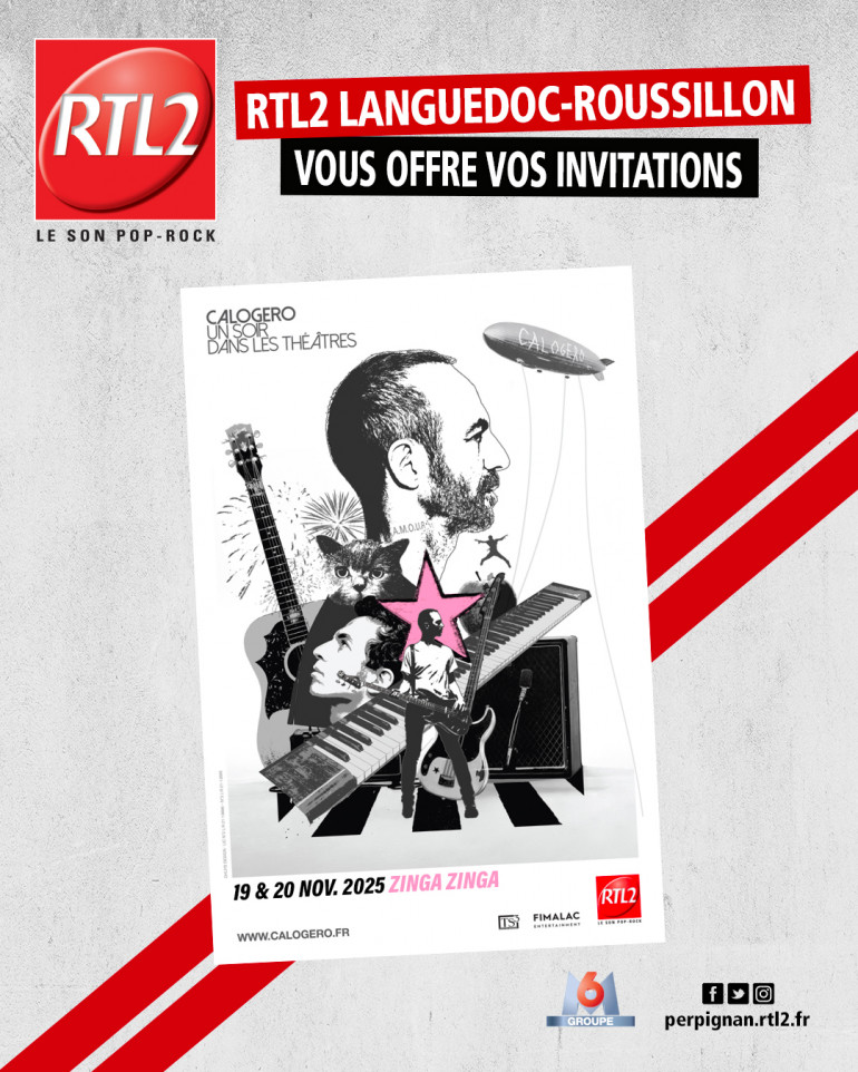 Pour jouer, écoutez RTL2 Languedoc-Roussillon entre midi et 16h, dès que vous repérez le signal RTL2, appelez le 04 30 32 36 01 et gagnez vos places pour le concert de Calogero, le 19 novembre à Béziers