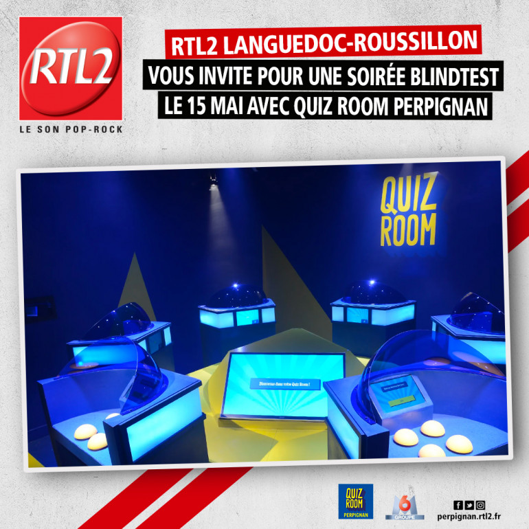 Pour jouer, écoutez RTL2 Languedoc-Roussillon entre midi et 16h, dès que vous repérez le signal RTL2, appelez le 04 30 32 36 01 et gagnez votre place pour nous défier lors du blind-test pop-rock, le 15 mai à Quiz Room Perpignan