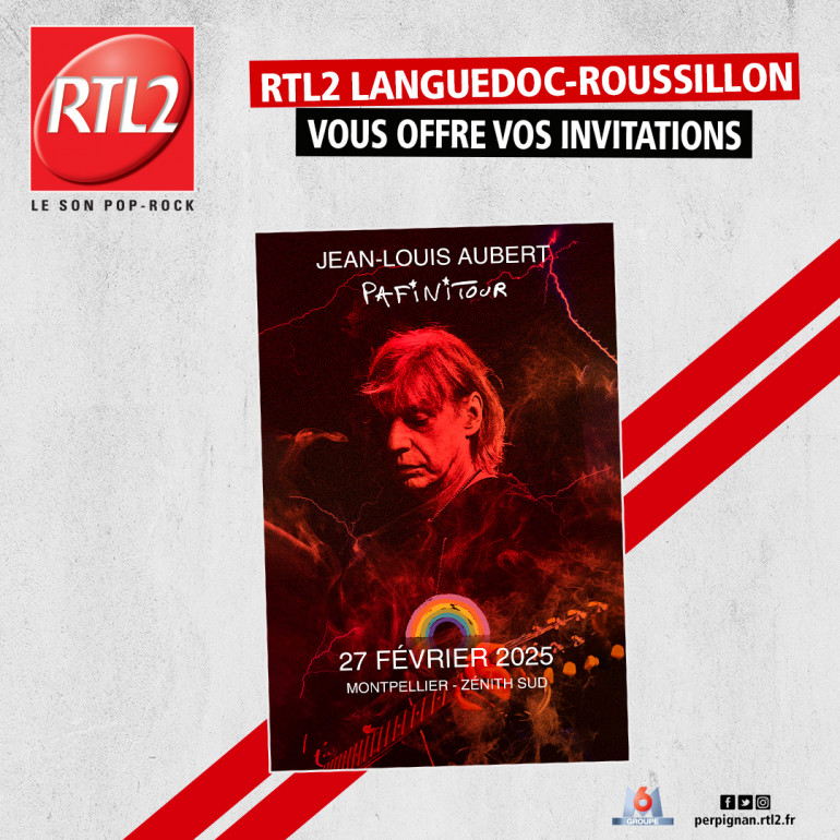 Pour gagner vos places, écoutez RTL2 Languedoc-Roussillon entre midi et 16h, dès que vous repérez le signal RTL2, appelez le 04 30 32 36 01 et venez applaudir Jean-Louis Aubert pour son concert au Zénith Sud de Montpellier, le 27 février