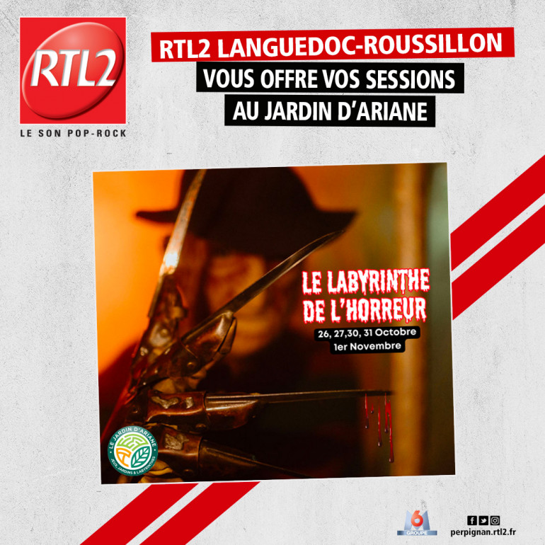 Cette semaine, écoutez RTL2 Languedoc-Roussillon entre midi et 16h, dès que vous entendez le signal RTL2, appelez le 04 30 32 36 01 et gagnez votre session pour le Labyrinthe de l'horreur au Jardin d'Ariane*