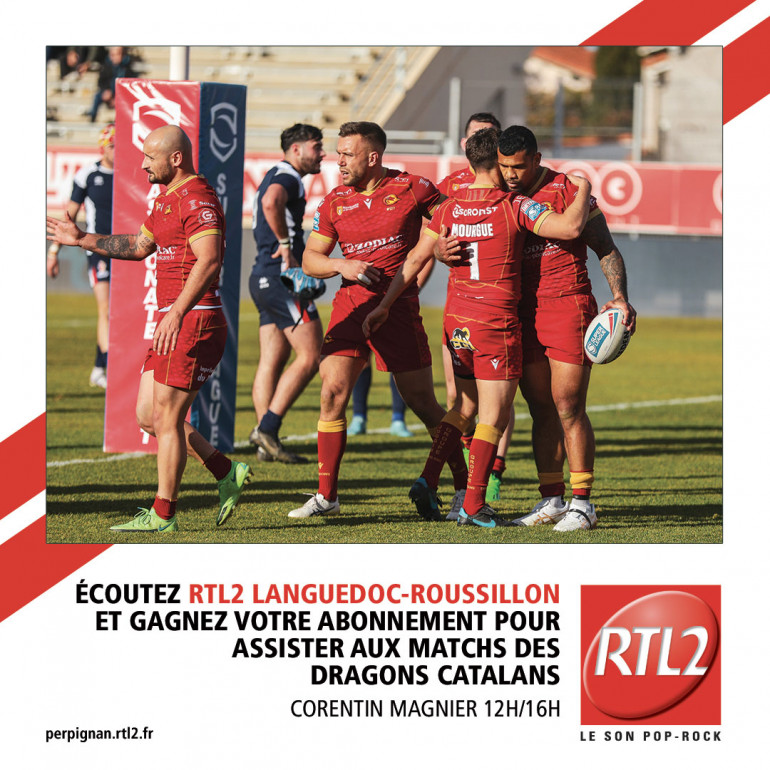 Pour gagner vos abonnements, écoutez RTL2 Languedoc-Roussillon entre midi et 16h, dès que vous repérez le signal RTL2, appelez le 04 30 32 36 01 et venez voir tous les matchs des Dragons Catalans de la saison 2022-2023