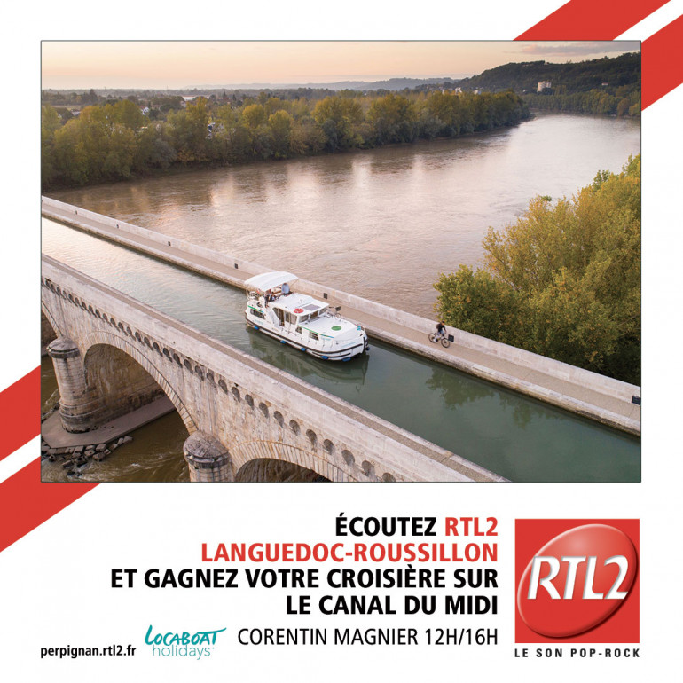 Cette semaine, écoutez RTL2 Languedoc-Roussillon entre midi et 16h, dès que vous entendez le signal RTL2, appelez le 04 30 32 36 01 et gagnez votre croisière* sur le Canal du Midi au départ de Bram avec Locaboat