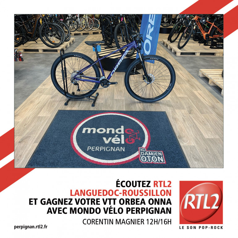 Pour gagner votre VTT, écoutez RTL2 Languedoc-Roussillon entre midi et 16h, dès que vous repérez le signal RTL2, appelez le 04 30 32 36 01 et gagnez votre VTT Orbea Onna avec Mondovélo Perpignan
