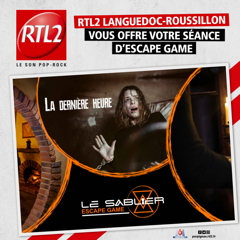 Cette semaine, écoutez RTL2 Languedoc-Roussillon entre midi et 16h, dès que vous repérez le signal RTL2, appelez le 04 30 32 36 01 et gagnez votre session d'Escape Game pour 3, au Sablier au Soler