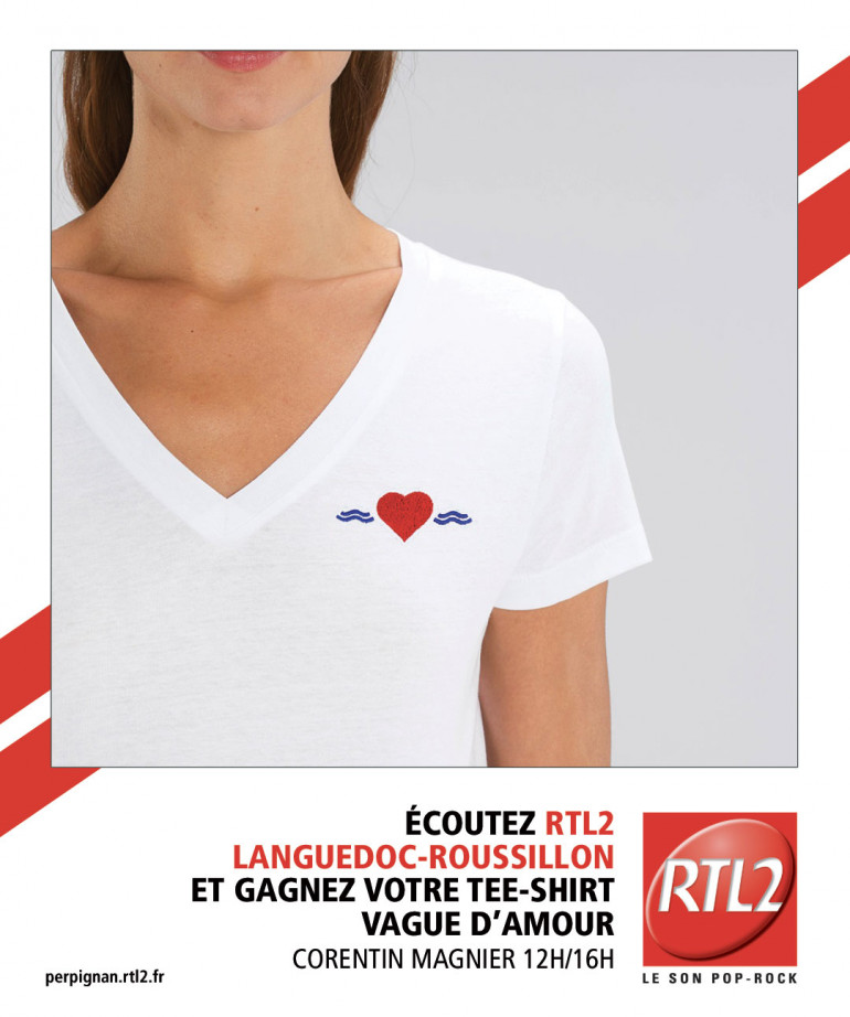 Pour gagner votre t-shirt Vague d'Amour, écoutez RTL2 Languedoc-Roussillon entre midi et 16h, dès que vous repérez le signal RTL2, appelez le 04 30 32 36 01 et gagnez votre t-shirt la marque perpignanaise Vague d'Amour
