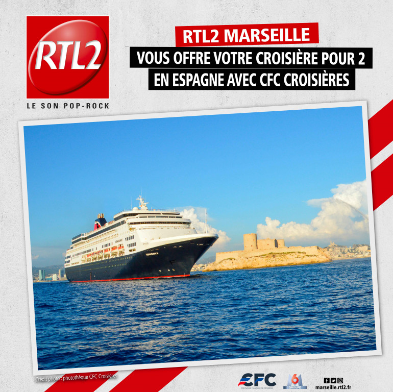 Cette semaine, RTL2 Marseille et la compagnie de croisières CFC vous offrent une croisière en Espagne pour 2 en pension complète à bord du navire Renaissance au départ de Marseille.