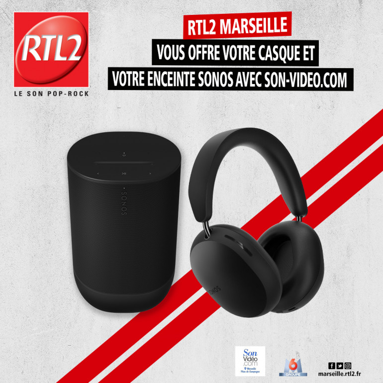 RTL2 Marseille et SON VIDEO Plan de Campagne vous offrent votre casque ACE et l'enceinte Move2 de SONOS.