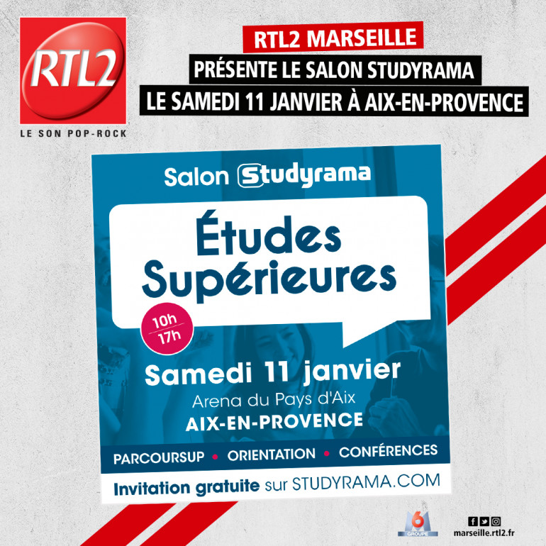 Sur le salon Studyrama des Etudes Supérieures d’Aix-en-Provence, vous pourrez rencontrer 800 Formations de Bac à Bac+5 (BTS, des Grandes Ecoles, Aix Marseille Université, l’IUT d’Aix Marseille et Polytech Marseille, des IUT, des Ecoles spécialisées, Prépas...). Vous pourrez assister à 5 conférences (Parcoursup, Pass/L.AS, Orientation...) et découvrir 1 Village Universitaire. Inscription gratuite !