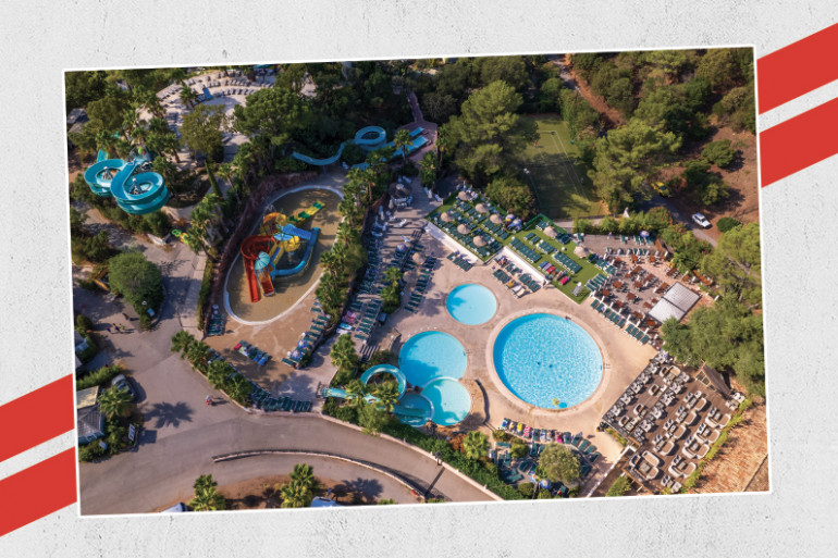 5 bassins, 5 toboggans dont un Black Hole, pentagliss ainsi que 1000 m² de plage de sable blanc et de palmiers, l’espace aquatique bénéficie de deux piscines chauffées et d’une piscine couverte pour les enfants.