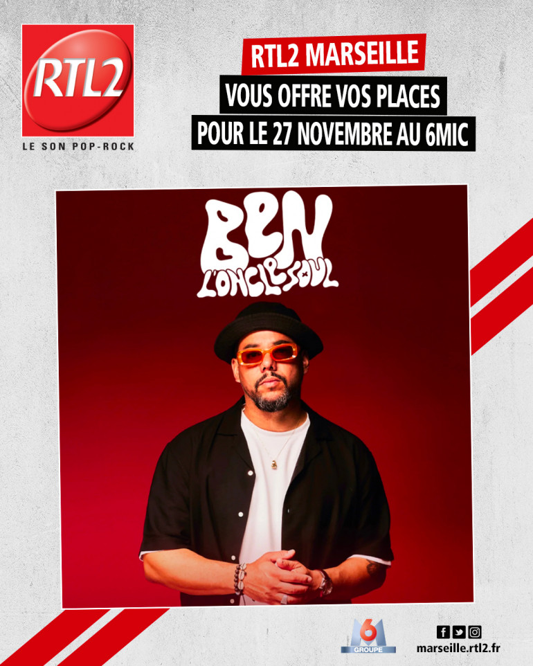 Envoyer vos coordonnées (prénom, nom, téléphone, mail, ville) + ''BEN" sur marseille@rtl2.fr et tentez de gagner vos places pour 2 personnes pour ce concert, bonne chance.