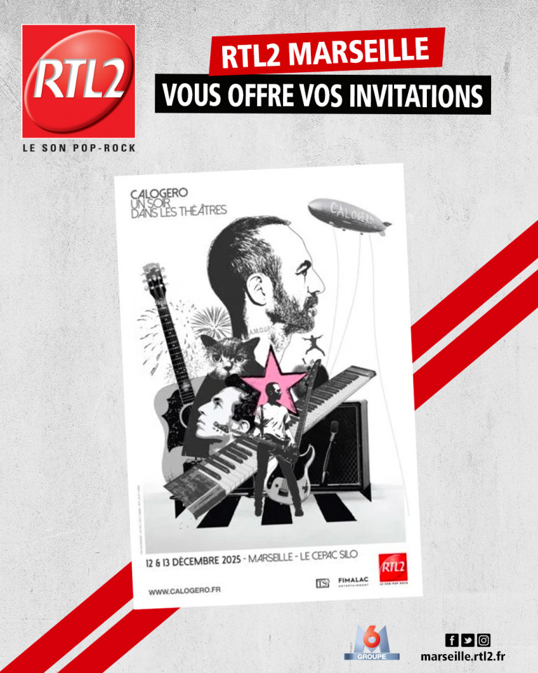 Tous les jours, jouez avec Romuald sur RTL2 Marseille, à tout moment entre midi et 16h dès vous entendez le signal RTL2, soyez le plus rapide au 04-88-91-35-21, et gagnez vos places pour le concert de Calogero les 12 et 13 Décembre au Cepac Silo Marseille.