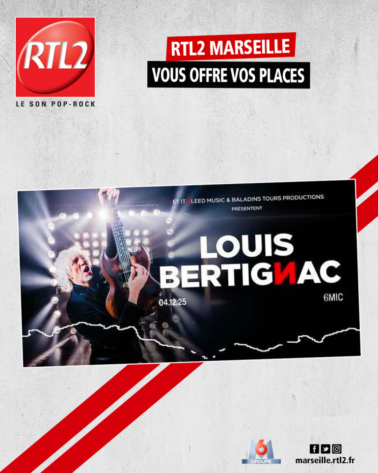Envoyer vos coordonnées (prénom, nom, téléphone, mail, ville) + ''BERTIGNAC" sur marseille@rtl2.fr et tentez de gagner vos places pour 2 personnes pour ce concert, bonne chance.