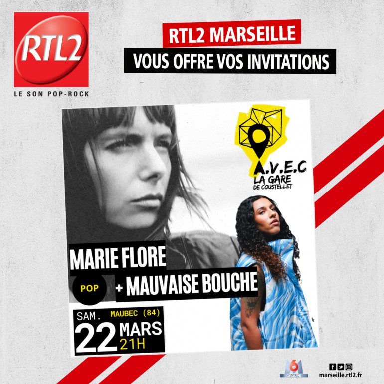 Envoyez vos coordonnées (Nom, Prénom, Ville, téléphone, mail) + "MARIE FLORE" à marseille@rtl2.fr, bonne chance.