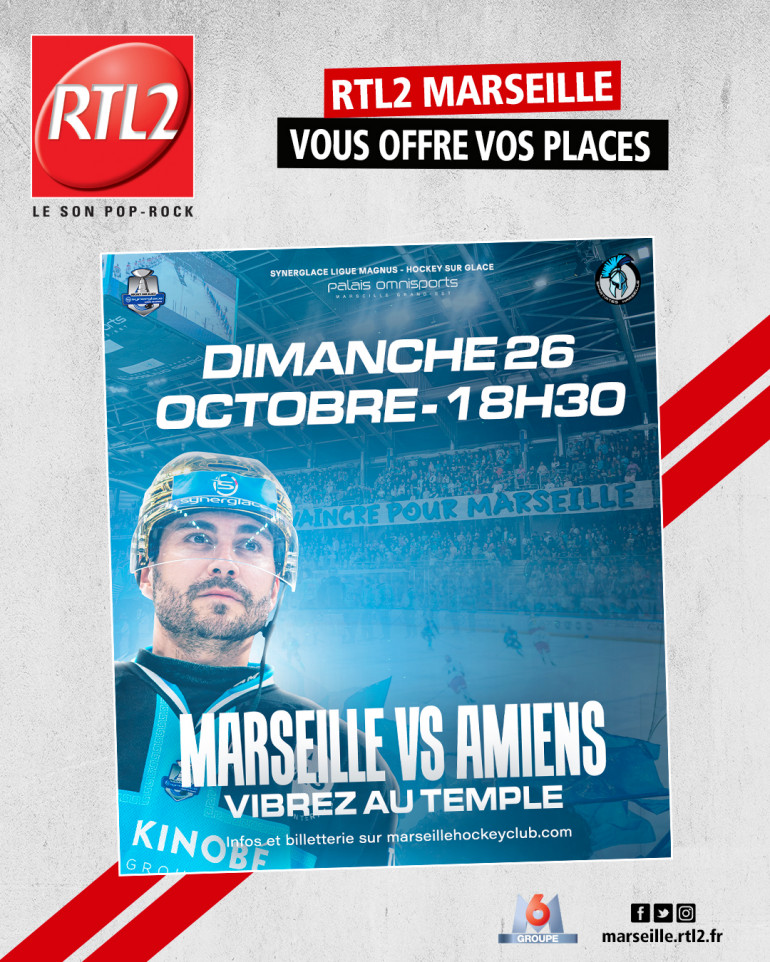 Pour tentez de gagner vos places pour 2 personnes pour ce match de Hockey sur glace Marseille vs Amiens Dimanche 26 Octobre 20h au POMGE (Palais Omnisports Marseille Grand Est)