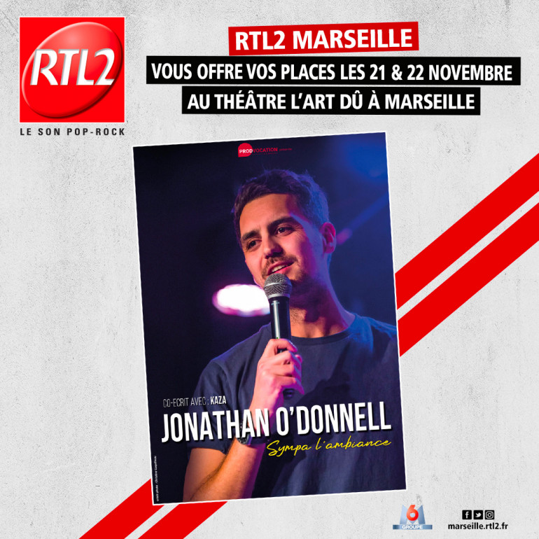 Gagnez vos invitations pour deux personnes, en envoyant "JONATHAN", choisissez soit le 21 ou le 22 Novembre, vos coordonnées complètes (nom, prénom, ville, téléphone, mail) à marseille.rtl2.fr. Bonne chance !