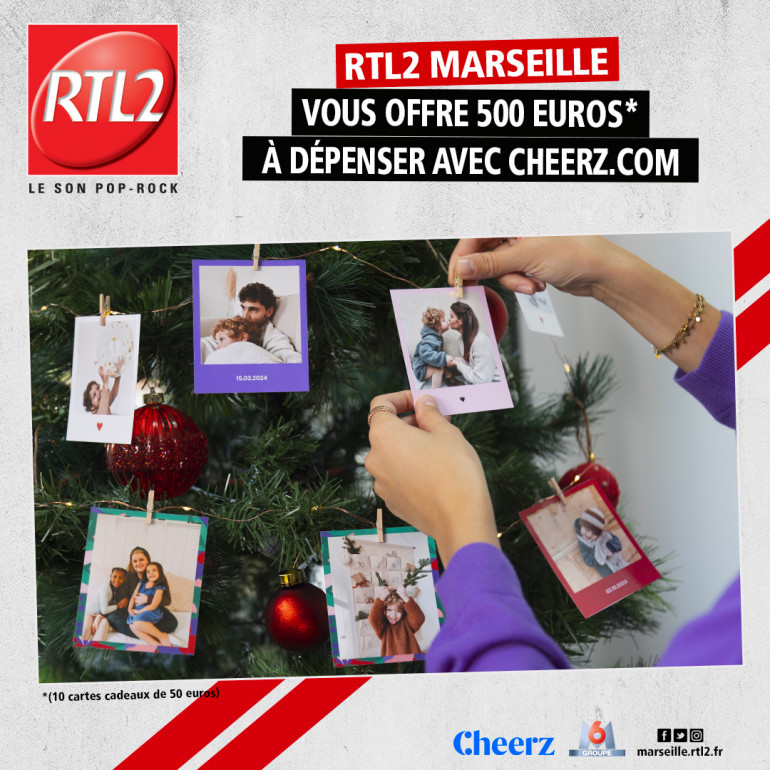 Toute la semaine, RTL2 Marseille vous offre vos cartes cadeau de 50 euros pour vous faire plaisir sur Cheerz.com !