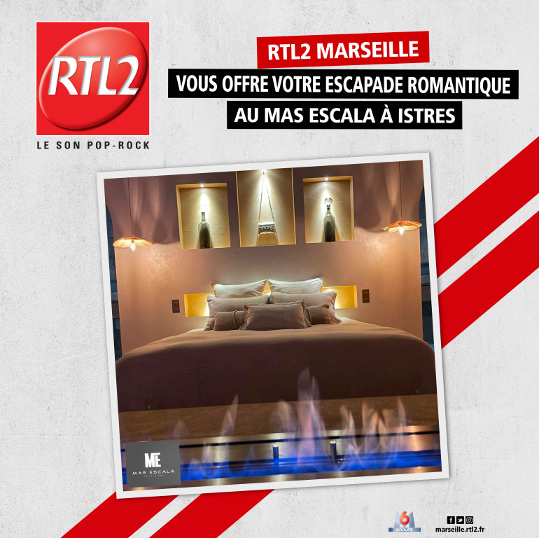 Cette semaine, RTL2 Marseille vous ouvre les portes du Mas Escala à Istres. Toute la semaine, tentez de gagner votre soirée exceptionnelle dans une suite luxueuse. Diner, baignoire balnéo dans la chambre, nuit dans un cadre élégant et petit-déjeuner, RTL2 s'occupe de vous avec le Mas Escala.