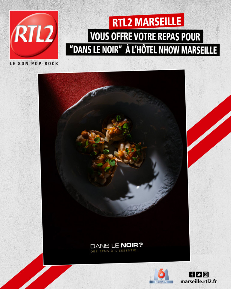 RTL2 Marseille vous invite à l'hôtel nhow Marseille, pour l'expérience Dans le Noir? un diner insolite et hors du commun. Vous serez accueillis sur des tables partagées ce qui apporte une dimension conviviale à l’expérience. Vous aurez l'opportunité de faire connaissance avec vos voisins de table dans cet environnement surprenant qui relativise les conventions sociales et met de côté les aprioris. Les conversations deviennent alors plus spontanées et authentiques. DANS LE NOIR : une expérience sensorielle, conviviale et humaine unique.