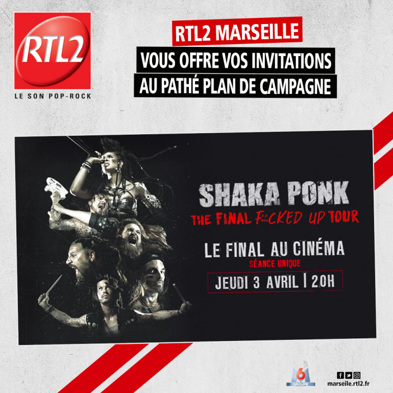 Le 3 avril 2024, à 20h, rendez-vous au Pathé Plan de Campagne pour célébrer le grand final de Shaka Ponk. Un événement en partenariat RTL2, pour clore ce chapitre inoubliable du rock français.