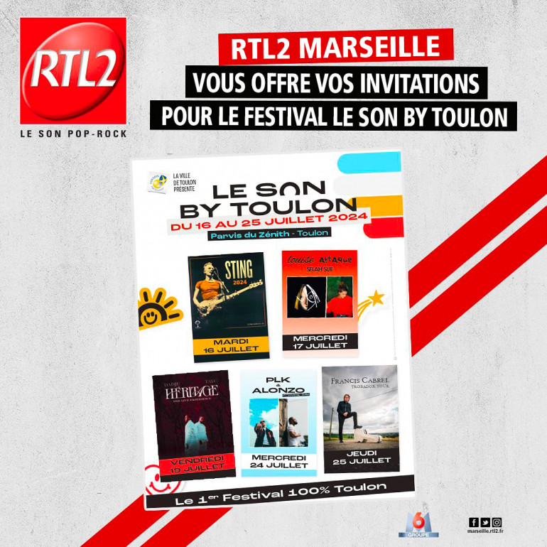 RTL2 Marseille vous invite à la première édition du festival LE SON BY TOULON, du 16 au 25 Juillet.
