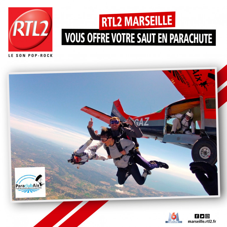 Cette semaine, RTL2 Marseille, vous offre votre saut en parachute en tandem avec le PARACHUTE CLUB D'AIX EN PROVENCE le seul centre de parachutisme entre Aix en Provence et Marseille.