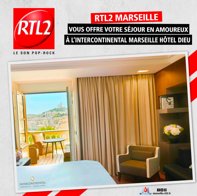 Pour gagner votre séjour à à l'Intercontinental Marseille Hôtel Dieu, jouez avec Romuald DEHORTER, écoutez RTL2 Marseille entre midi et 16h du lundi au vendredi, dès que vous repérez le signal RTL2 caché entre deux titres pop rock, appelez le 04 88 91 35 21 !